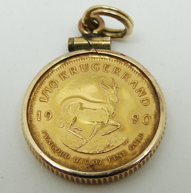 A 1/10 1980 Kugerrand in a pendant mount, 4.5g