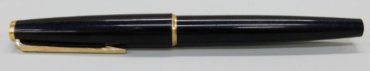 Montblanc no.320 fountain pen with black resin barrel and cap, gold plated fittings,white star cap and end and gold nib, NVSN, 13.5cm long.