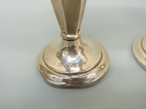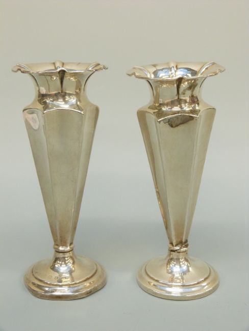 A pair of Victorian hallmarked silver tapering octagonal vases. Birmingham 1899, maker's mark rubbed, height 15.5cm