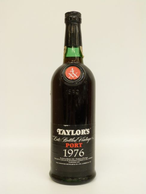 Three bottles of alcohol comprising Glenmorangie whisky 1 litre 43% volume, Taylor's 1976 LBV port 70cl 20% and Martell Medallion VSOP cognac 0.7 litre 40% vol