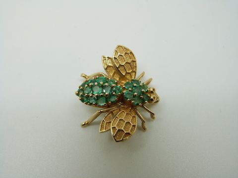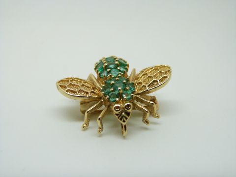 A 14ct gold brooch/ pendant in the form of an insect set with emeralds, 2.5 x 3cm