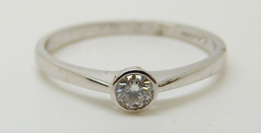 An 18ct white gold ring set with a diamond of approximately 0.2ct, 2.21g (size P)