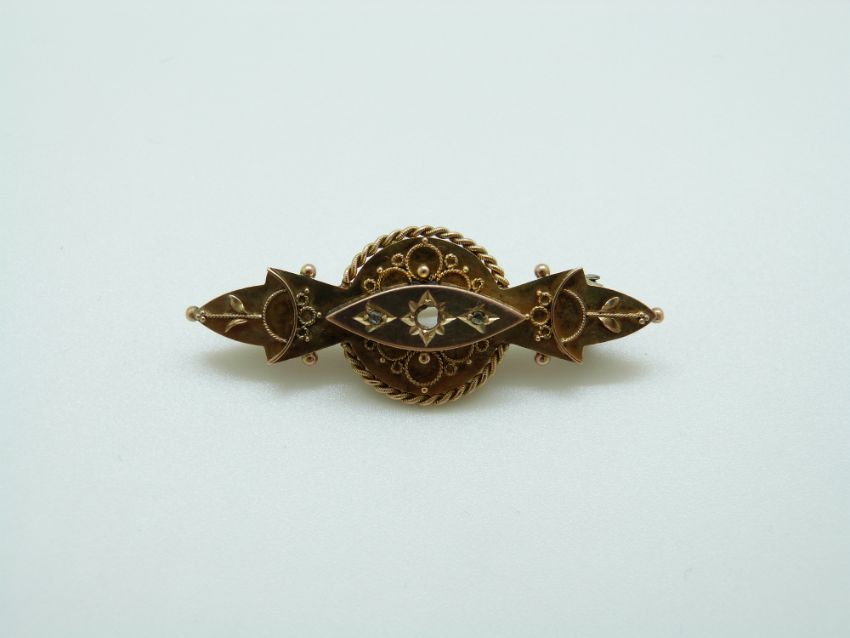 Two 9ct gold Edwardian brooches, a silver Edwardian sweetheart brooch and a Victorian brooch depicting a swallow and a thistle
