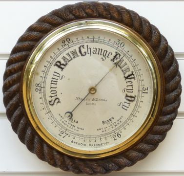 Negretti & Zambra of London barometer in oak rope twist surround, 30cm overall diameter