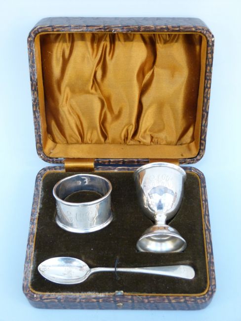 A cased hallmarked silver three piece cruet set