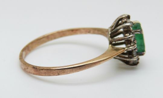 A 9ct gold ring set with an emeralds in a cluster