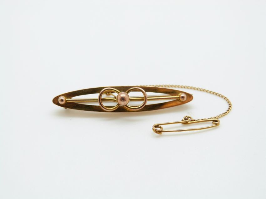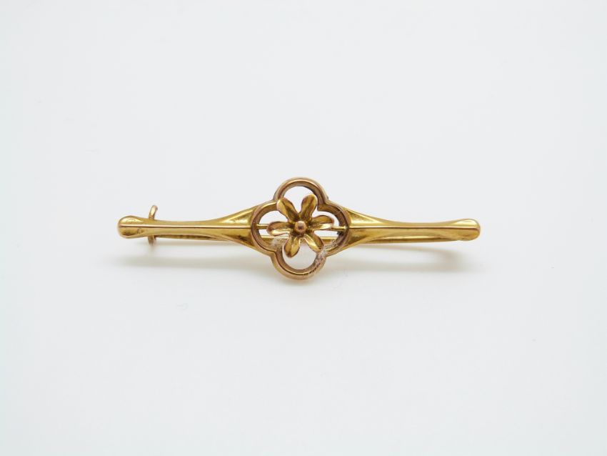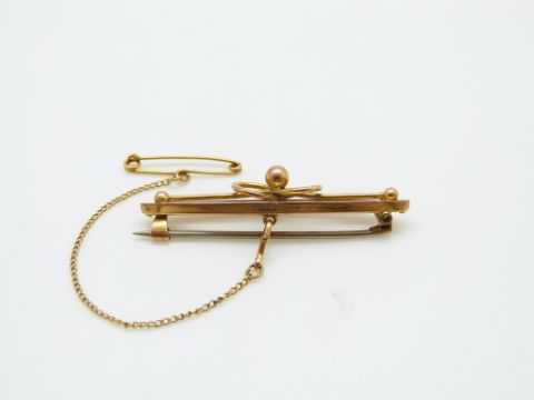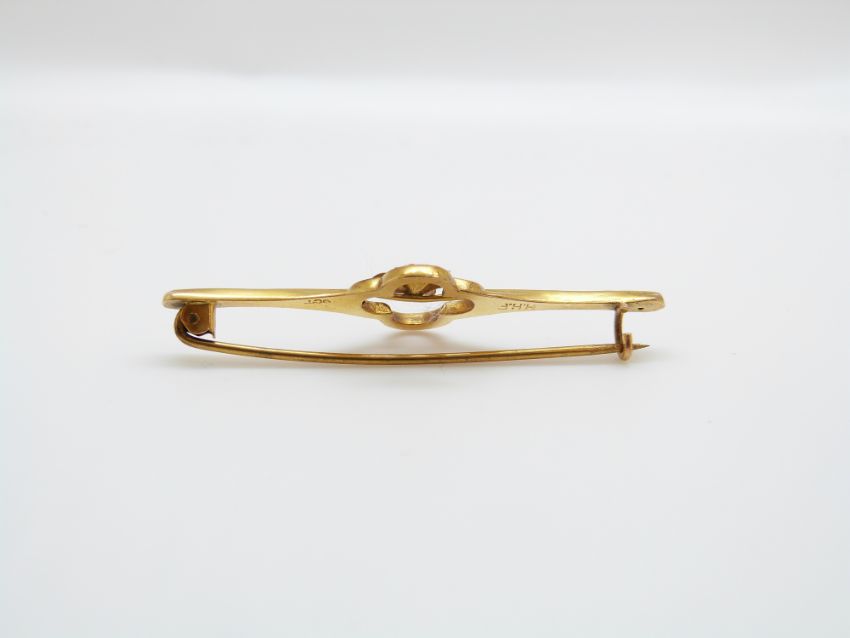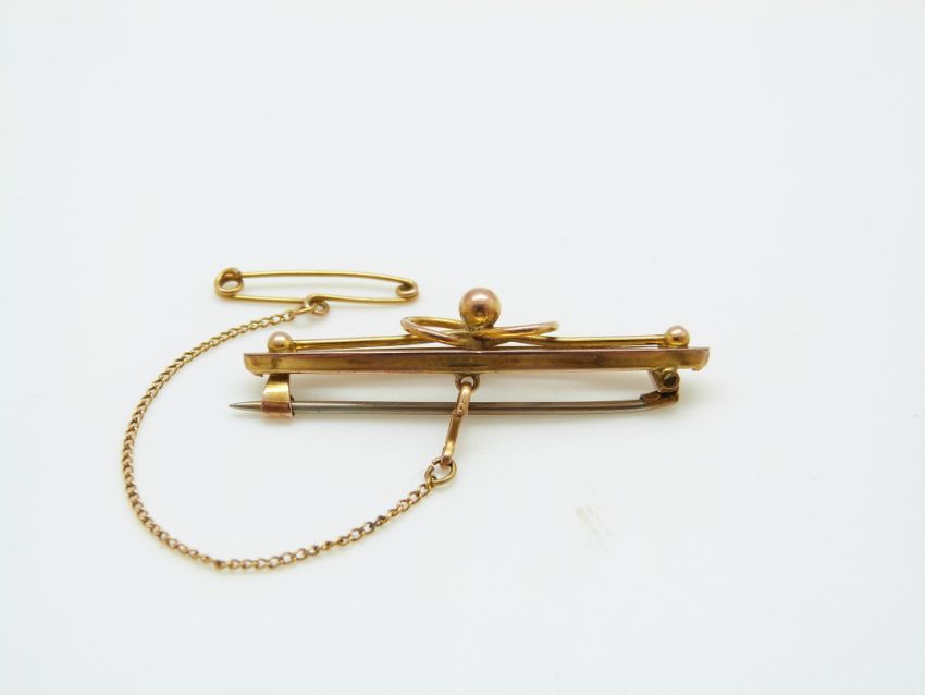 Two 9ct gold Edwardian brooches and a yellow metal brooch set with seed pearls, 5g