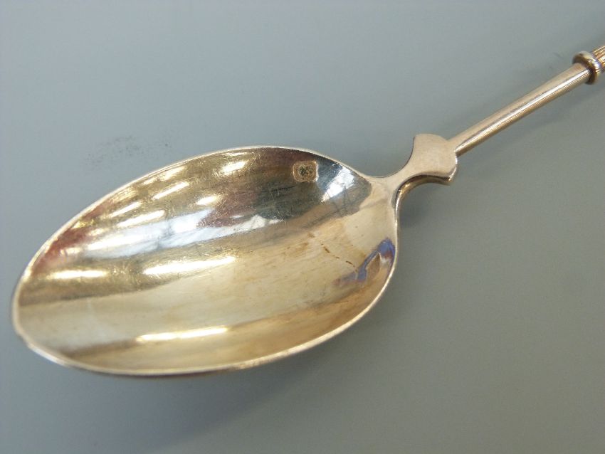 A cased set of ten French white metal teaspoons with nips, Paris silver marks, maker Francois Nicoud, weight 189g