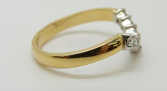 An 18ct gold ring set with diamonds in a V shape setting, 3.66g (size N)