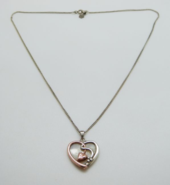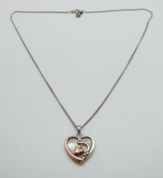 A 9ct gold and silver Clogau pendant in the shape of a heart set with mother of pearl