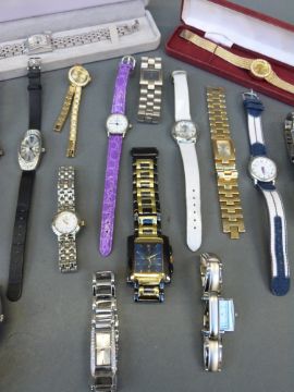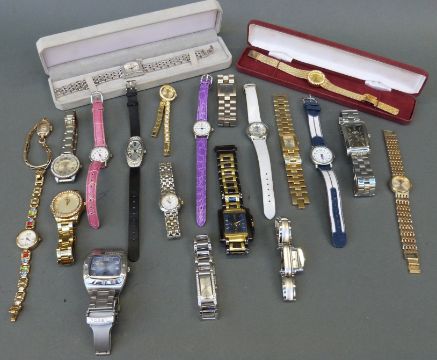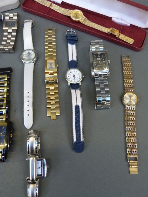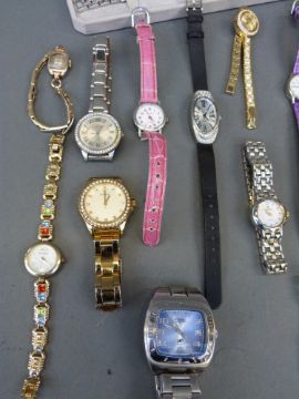 Twenty-one ladies fashion watches including Fossil, Sekonda and Sky, some in original boxes.