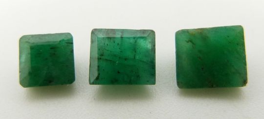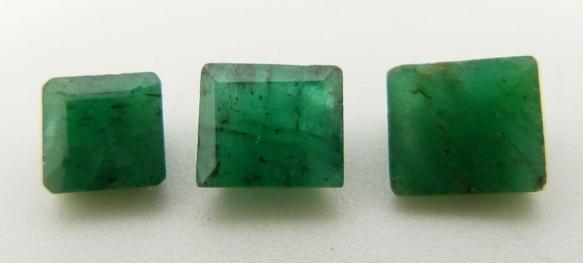 An emerald cut emerald of approximately 0.5ct and two square cut emeralds approximately 0.6ct