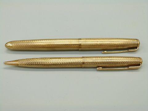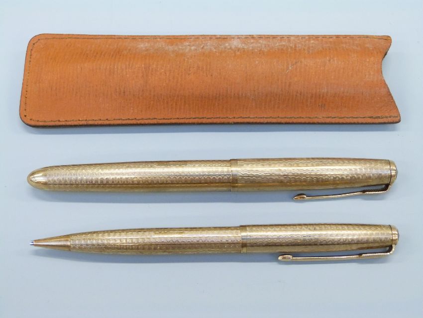 A hallmarked 9ct gold Parker 51 fountain pen and propelling pencil set