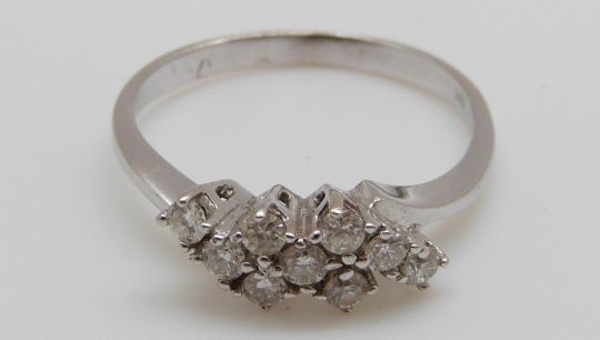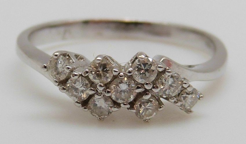 A 14ct white gold ring set with diamonds, 2.3g (size M)