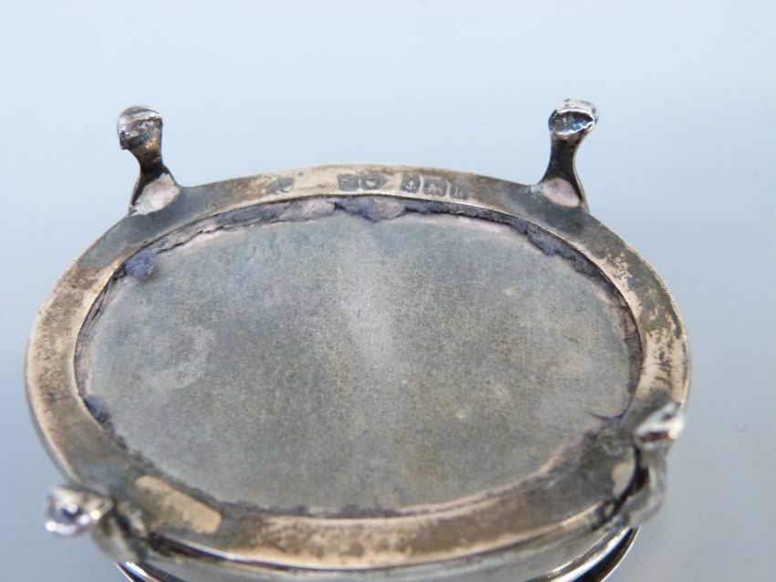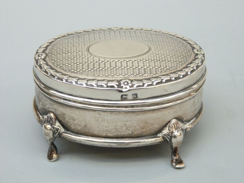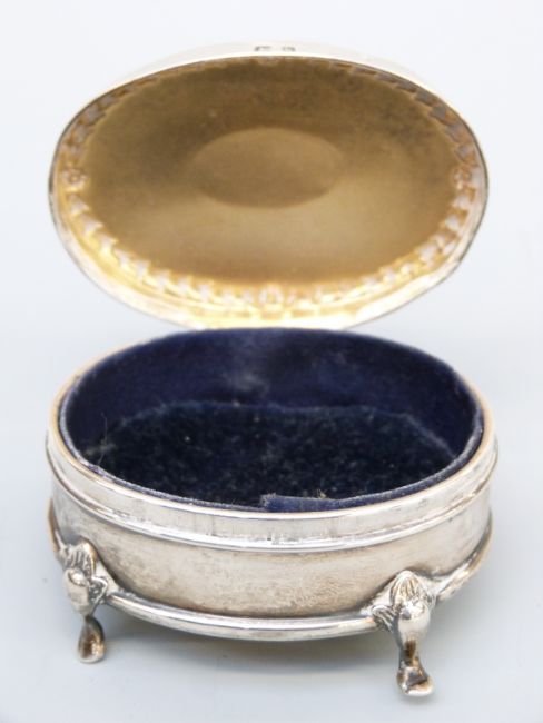 A George V hallmarked silver four footed casket raised on four shaped feet, B'ham 1911, maker Henry Mathews, length 6.5cm