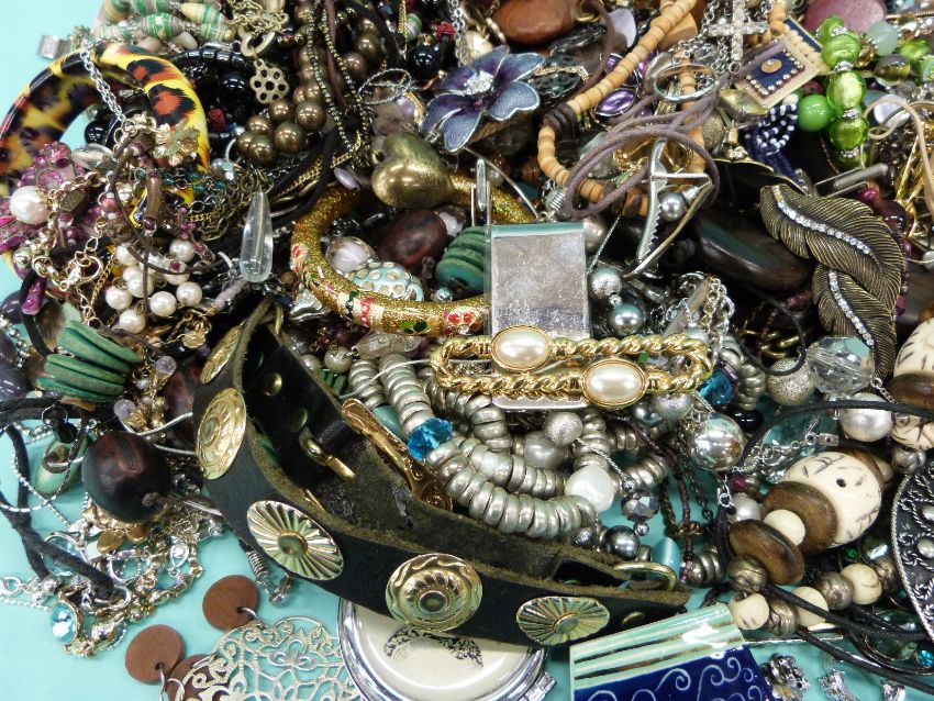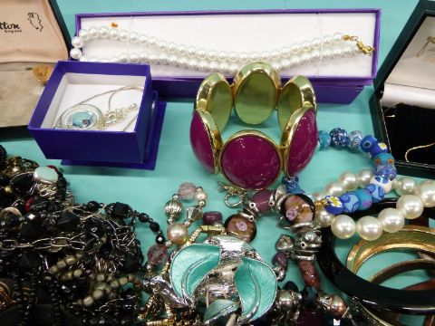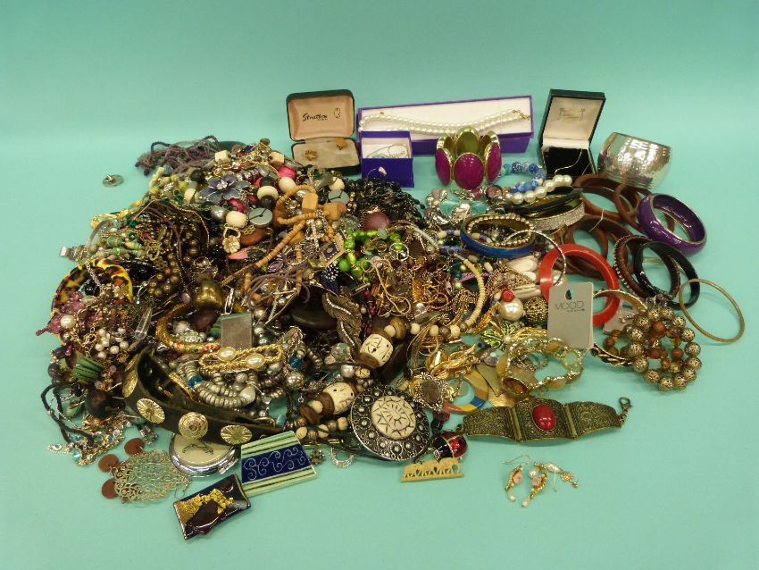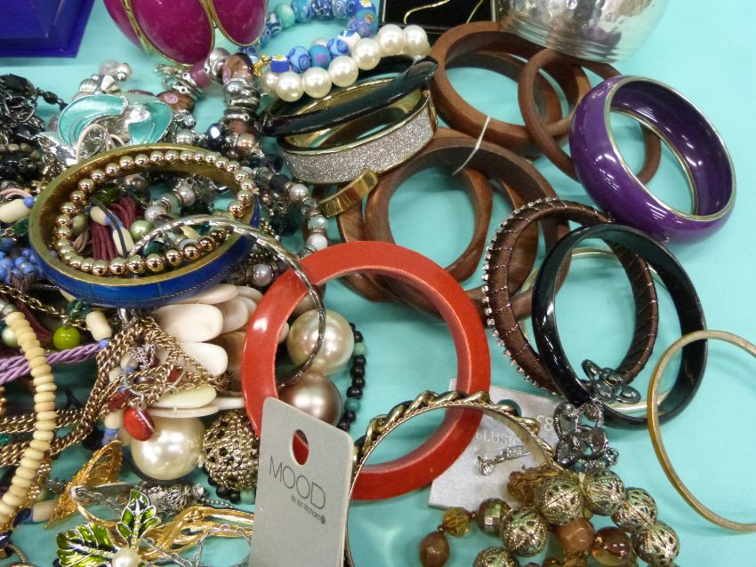 A collection of costume jewellery including bangles and beads