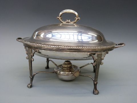 A plated spirit food warmer in the neoclassical style, width 31cm