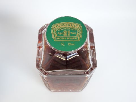 Bowmore 21 year old single malt Scotch whisky in Glencairn Crystal engraved with 'Famous Golf Courses of Scotland - No.2 St Andrews', 75cl, 43% vol, in original fitted box.