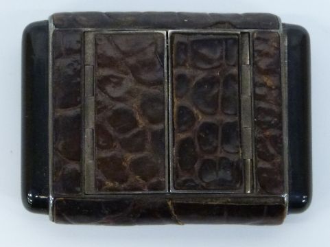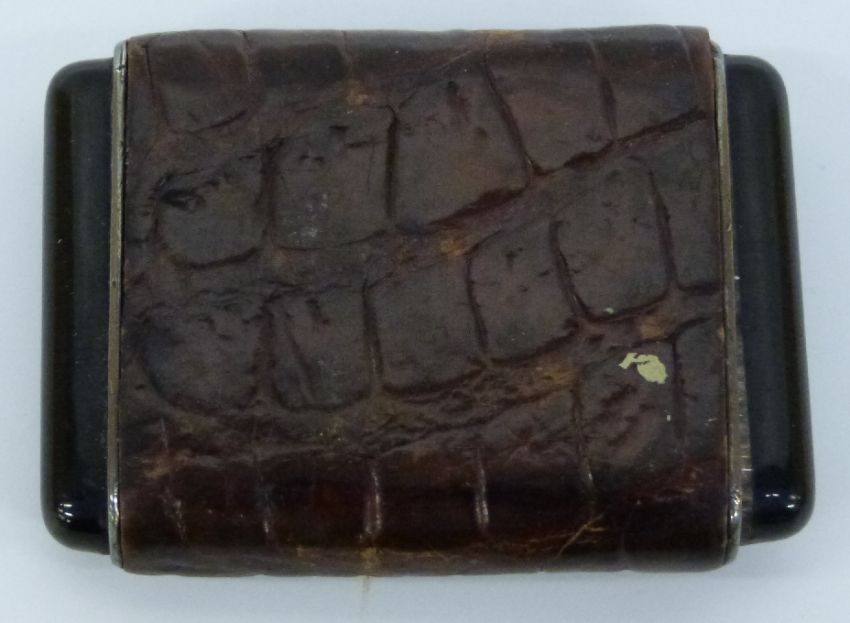 Tavannes 5 brown crocodile leather and silver purse watch, with a squeeze mechanism that opens the case with control mark stamped '0.925', and number 'B25925' over '9755' '