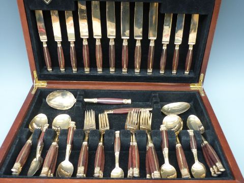 A Regency bronze and rosewood 44-piece canteen of cutlery