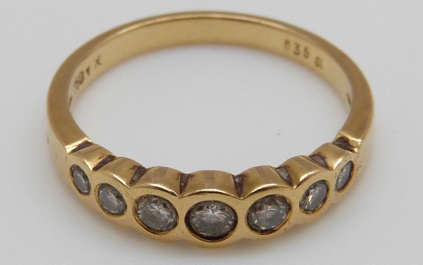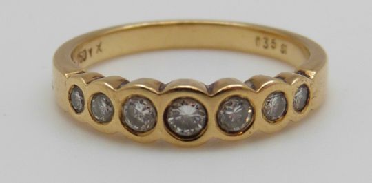 An 18ct gold ring set with seven round brilliant cut diamonds totalling approximately 0.35ct (size O)