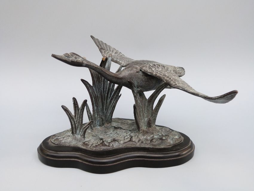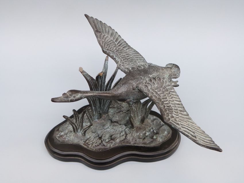 A bronze or similar model of a swan in flight, H13 x L20cm