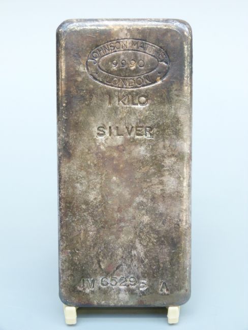 Johnson Matthey London 1 kilo 9990 silver ingot or bar no JM 65295 A, length 12cm