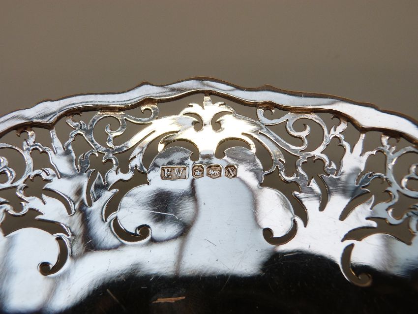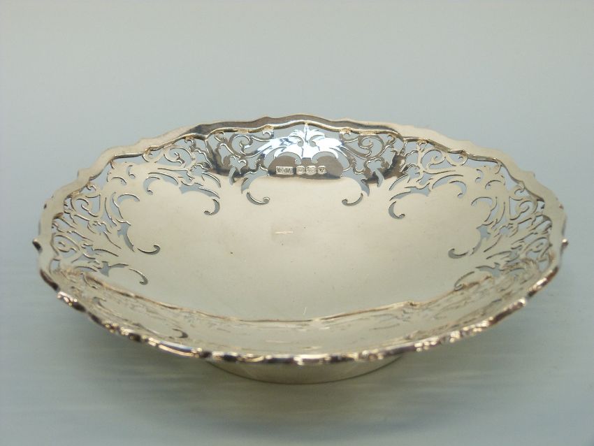 A hallmarked silver pierced pedestal bon bon dish, Sheffield 1965 maker Viners Ltd, height 3.5cm, 16cm diameter, weight 235g