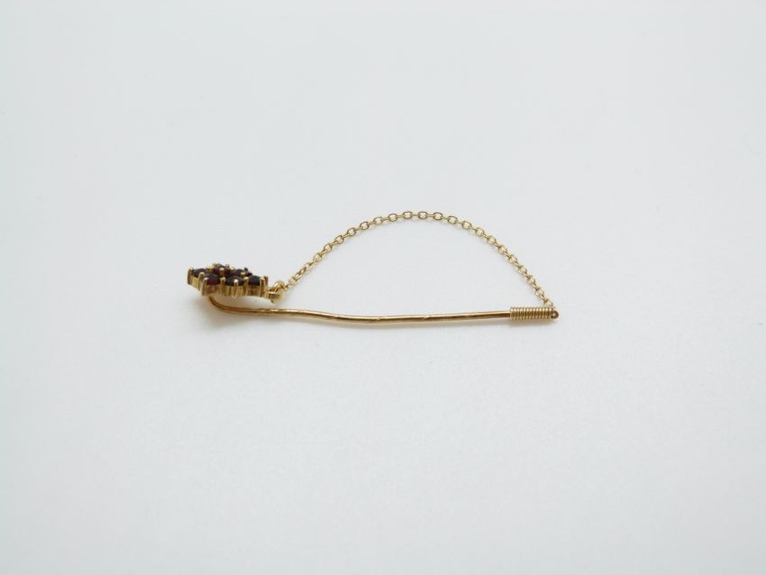 A 9ct gold stick pin set with garnets- NOT GOLD RING THEN DELETE