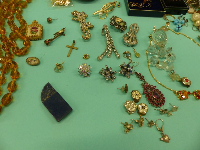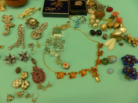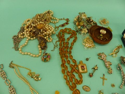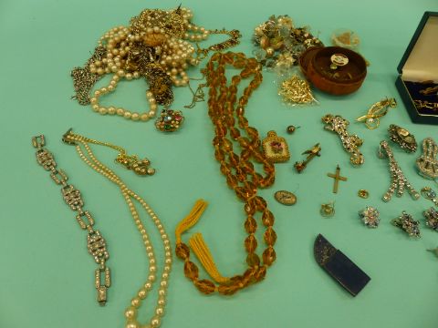 A collection of costume jewellery including Mizpah, cufflinks, earrings, beads, watches etc