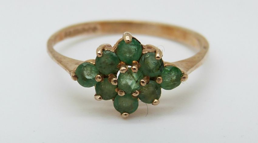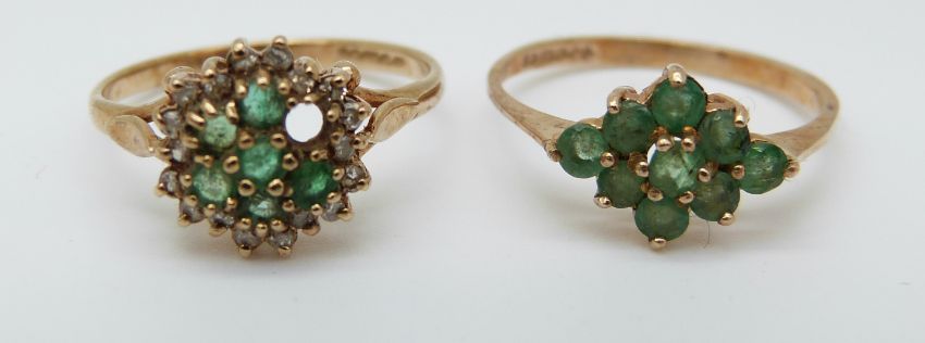 Two 9ct gold rings set with emeralds (size M and N)