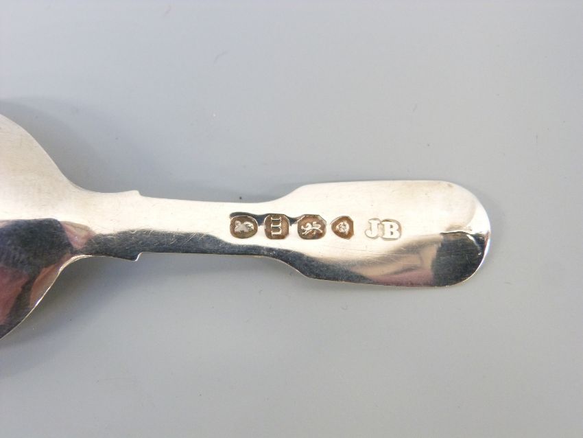 A Georgian hallmarked silver and fiddle pattern caddy spoon, London 1827 maker James Beebe, length 9cm