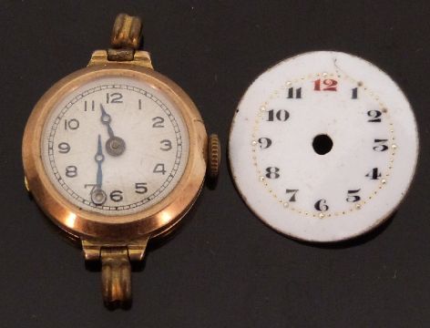 18ct gold ladies wristwatch with blued Breguet hands and Arabic numerals together with an enamel watch face.