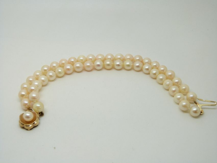A two-strand cultured pearl bracelet with 9ct gold clasp