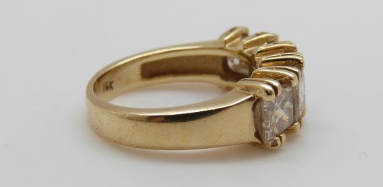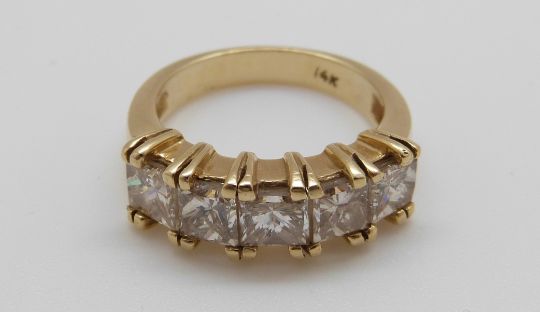 A 14ct gold ring set with five princess cut diamonds each approximately 0.5ct (size L)