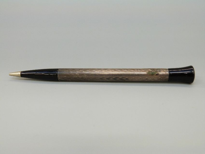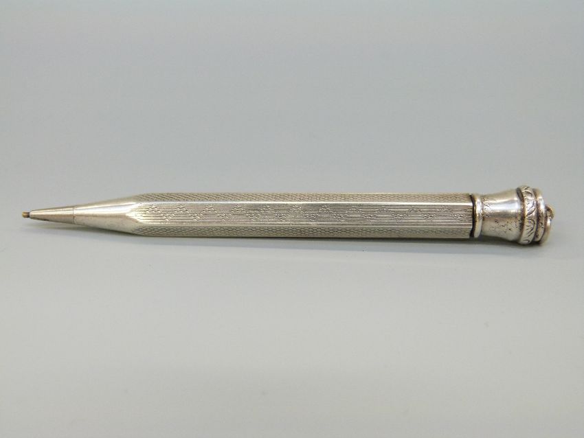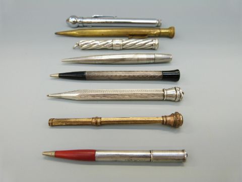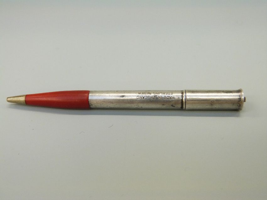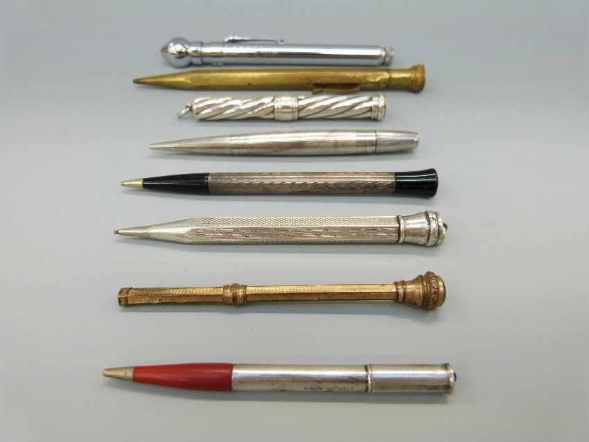 Four white metal pencils including life long marked sterling silver, hallmarked silver pencil holder and other pencils etc