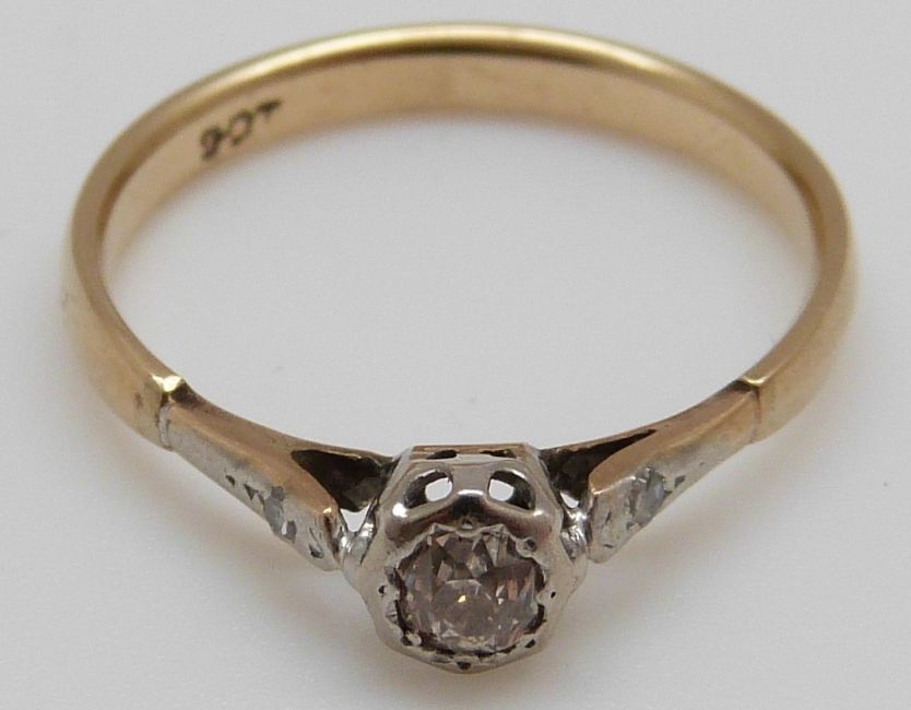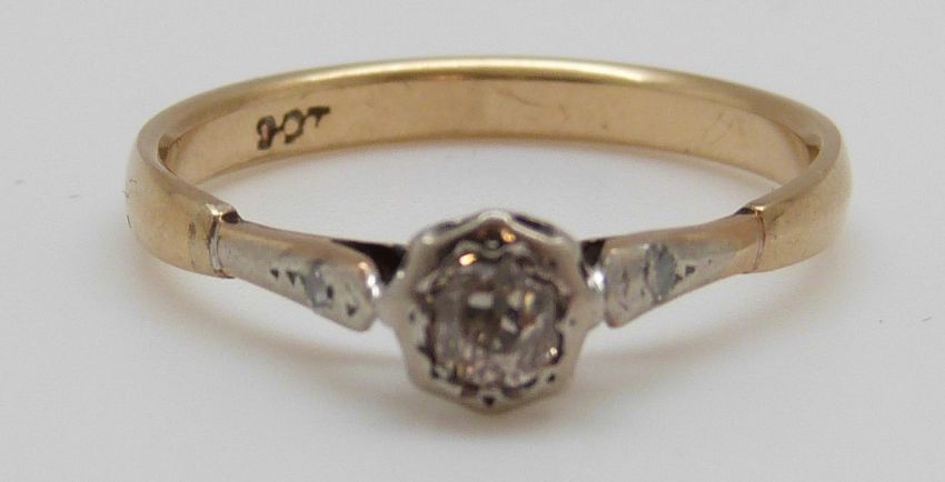A 9ct gold ring set with an old cut diamond of approximately 0.2ct (size O)