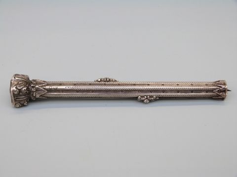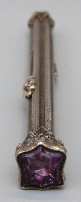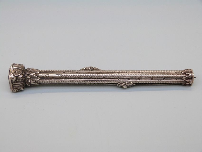 A hallmarked silver propelling pencil and pen by S. Mordan with a foiled paste end and cross hatched and reeded shaft
