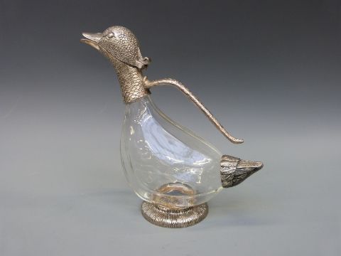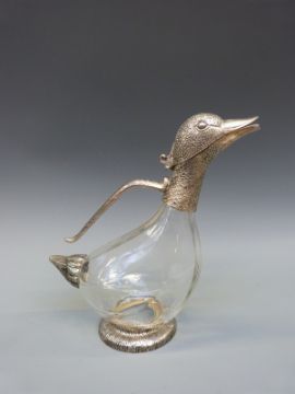 A novelty claret jug formed as a duck, height 26cm