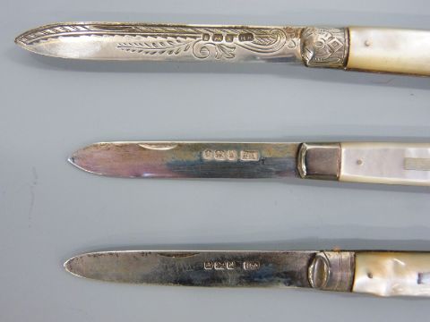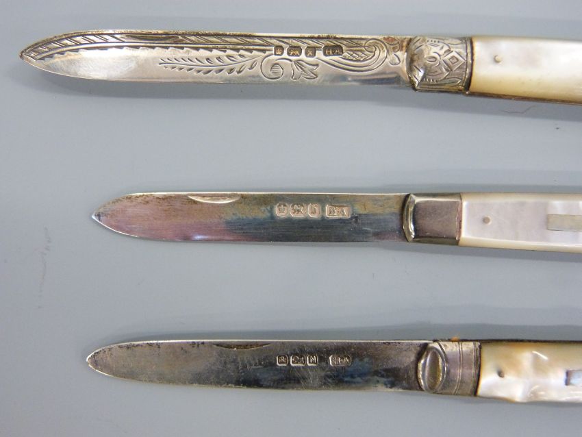 Three Victorian hallmarked silver and mother of pearl fruit knives
