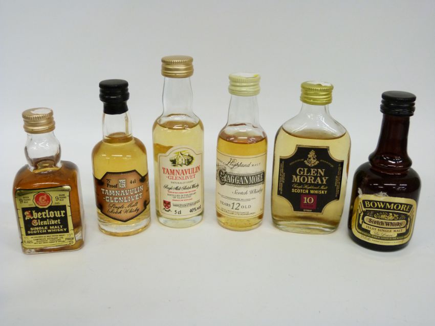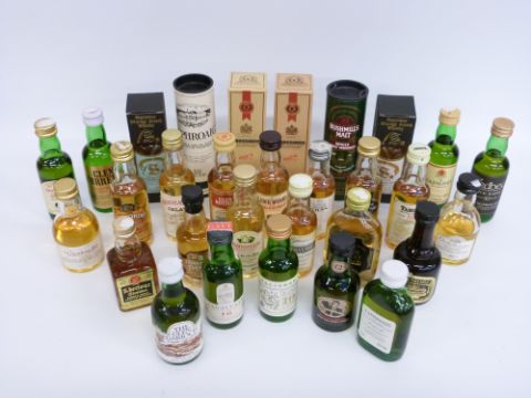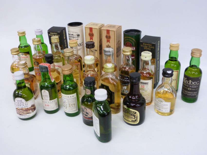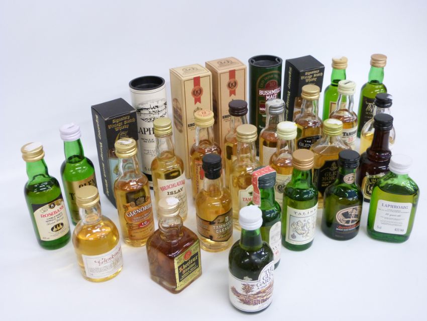 Approximately 29 single malt whisky miniatures including Knockando, Glenkinchie, Laphroiag, Signatory, Bowmore, Bruichladdich, Oban etc