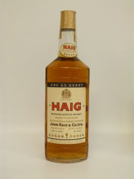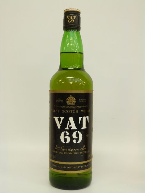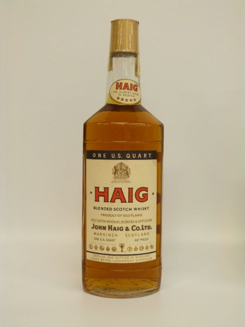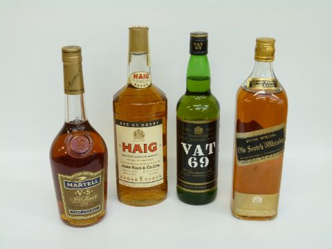 Three bottles of whisky comprising, Haig 1 quart, 43% vol, Johnnie Walker black label, VAT 69 70cl 40% vol and a bottle of Martell fine cognac 70cl 40% vol