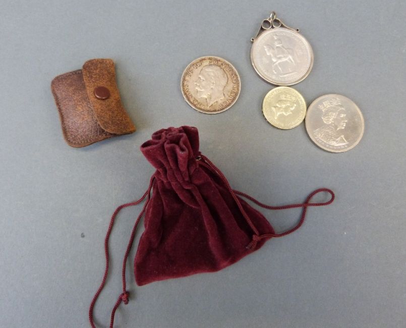A 1935 George V rocking horse crown together with a collection of silver threepenny pieces, Victoria onwards, modern crowns etc