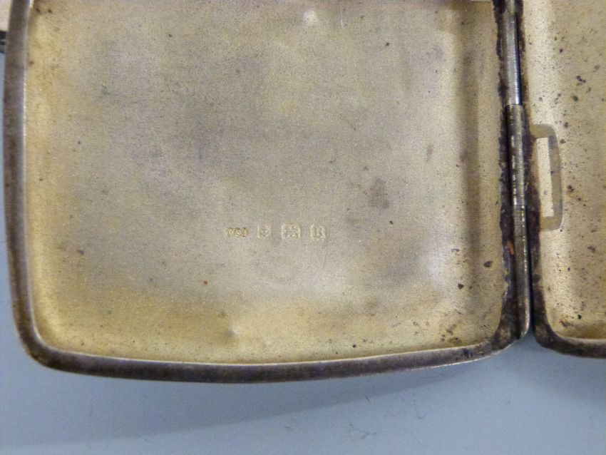 A hallmarked silver cigarette case, vesta, Goldsmith & Silversmith Company swimming medal, two lighters, plated salts etc, weight of silver 120g