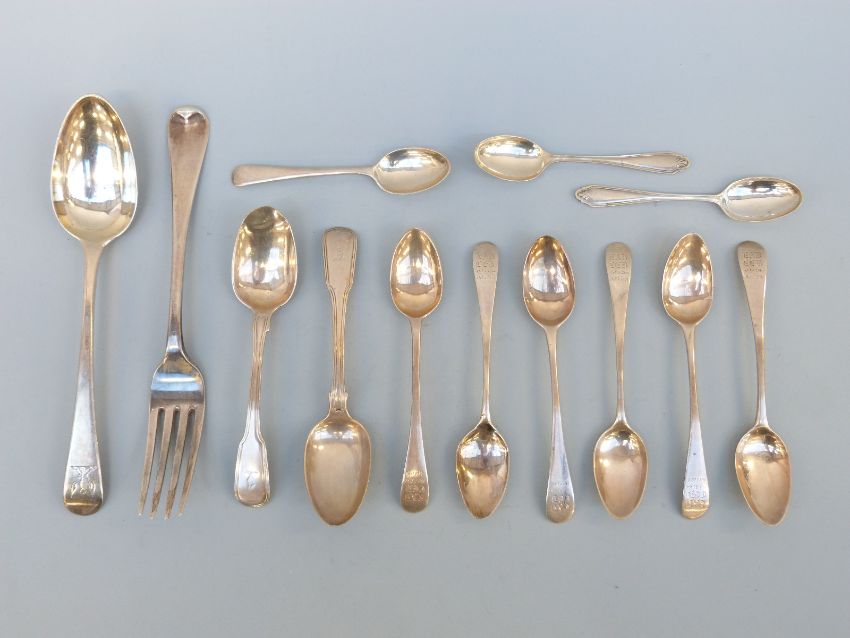 A collection of Georgian and later hallmarked silver cutlery including a set of six Georgian teaspoons, weight 288g