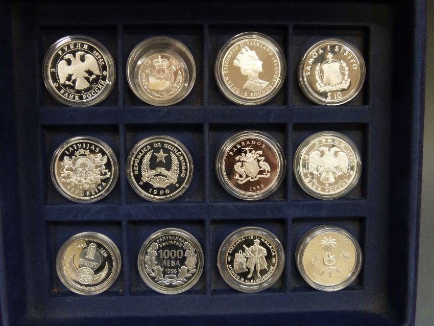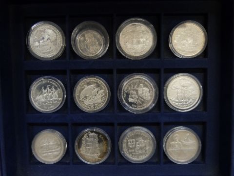 Twelve silver commemorative Ships and Explorers crown sized etc coins in a collector's case, to include First Sighting of the Falkland Islands etc