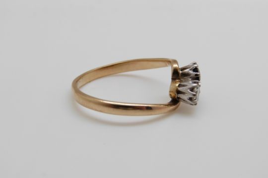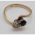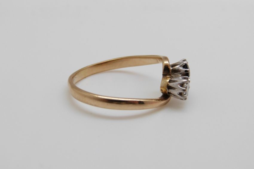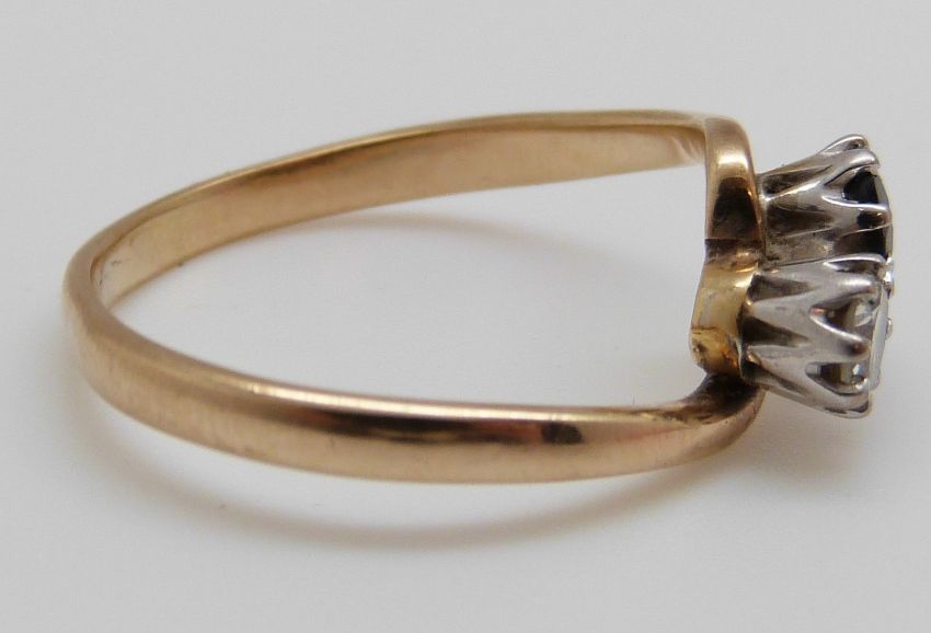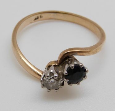 A 9ct gold ring set with a diamond and sapphire in a twist setting (size Q/R)