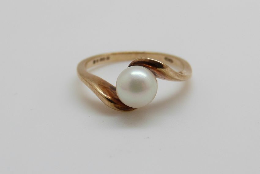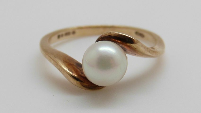 A 9ct gold ring set with a pearl, 2.0g, size J