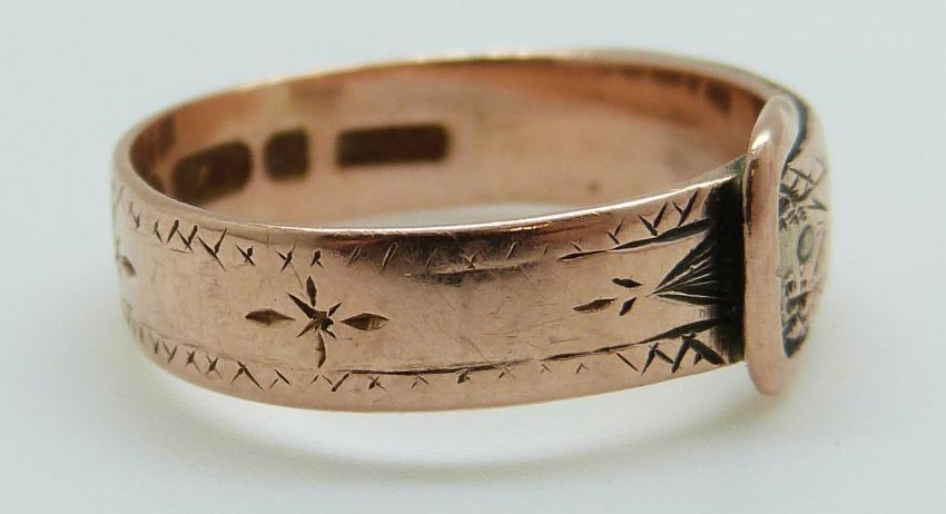 A 9ct rose gold buckle ring, 2.6g, size M