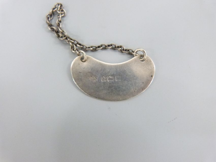 A George V Hukin & Heath hallmarked silver whisky noggin bottle ticket or label, Birmingham 1921